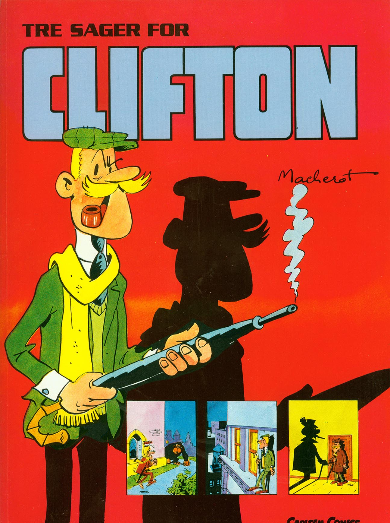 CLIFTON BOB DE GROOT OG TURK Bob De Groot (f. 26. oktober 1941, Belgien) er en belgisk tegneserieforfatter, bedst kendt for hans samarbejde med Turk på serierne Robin Dubois, Léonard og Clifton. Men han begyndte sin karriere som kunstner. Han er født i Bruxelles og var sytten år gammel, da han indskrev sig på kunstskolen. Det var begyndelsen på et langvarigt samarbejde mellem De Groot og Turk, der blev videreført med Archimède i mini-bøgerne i Spirou i 1968. De sluttede sig til Tintin det følgende år og skabte deres første humoristiske Robin Dubois historier. Det blev en af deres mest kendte frembringelser, der blev samlet i bogformat af Lombard og Dargaud mellem 1979 og 1998. Også for Tintin overtog duoen agentserien Clifton fra Jo-El Azara (oprindeligt skabt af Raymond Macherot) i 1970. De Groot forblev manuskriptforfatter i løbet af 1980'erne og arbejdede sammen med kunstneren Bédu mellem 1986 og 1990. I de tidlige stadier samarbejdede Turk og De Groot både tekst og tegninger. Men i sidste ende tog De Groot det meste af skriveopgaverne, mens Turk fokuserede på tegningerne. I 1975 skabte duoen Léonard, deres længste løbende serie og en parodi på Leonardo da Vinci. Den blev første gang offentliggjort i Achille Talon Magazine og blev også meget populær i Holland gennem dens offentliggørelse i bladet Eppo. Bøger er blevet offentliggjort efterfølgende af Dargaud, Appro og Le Lombard siden 1977. Gennem 1970'erne og 1980'erne udvidede De Groot sine samarbejder og skrev tekst til Le Club des Peur-de-Rien (med tegninger af Tibet, assisteret af Turk), Chlorophylle (med tegninger af Dupa og Walli), Digitaline (af Jacques Landrain, den første tegneserie, der blev skabt helt på en computer, 1989), Des Villes et des Hommes (med tegninger af Francq) og noveller med Tibet, Greg, Géri og Dany. Han skrev historien Lucky Luke, Le Bandit Manchot i 1981 og arbejdede sammen med Morris igen mellem 1995 og 2001 på Ran-tan-plan spin-off serien tegnet af Vittorio Leonardo, samt to nye Lucky Luke episoder (Marcel Dalton, 1998 og L'Artiste Peintre, 2001). I 1993 sluttede han sig sammen med kunstneren André Taymans og medforfatteren Jean-François di Giorgio for at skrive den anden historie om Sam Griffith, udgivet af Éditions Alpen. I 1999 indledte han et samarbejde med Michel Rodrigue på tre album Doggyguard (1999-2000) og nye Clifton-historier mellem 2003 og 2006. Han genoptog Robin Dubois det følgende år, men nu med Ludo Borecki og Miguel Díaz Vizoso. Turk og De Groot's Leonard vendte også tilbage til siderne i Eppo efter bladets genopståen i 2009. Nye serier omfatter Père Noël & Fils med Philippe Bercovici (2006-2008) og Le Bar des acariens med Godi (2008-2009), som begge blev udgivet af Glénat. |