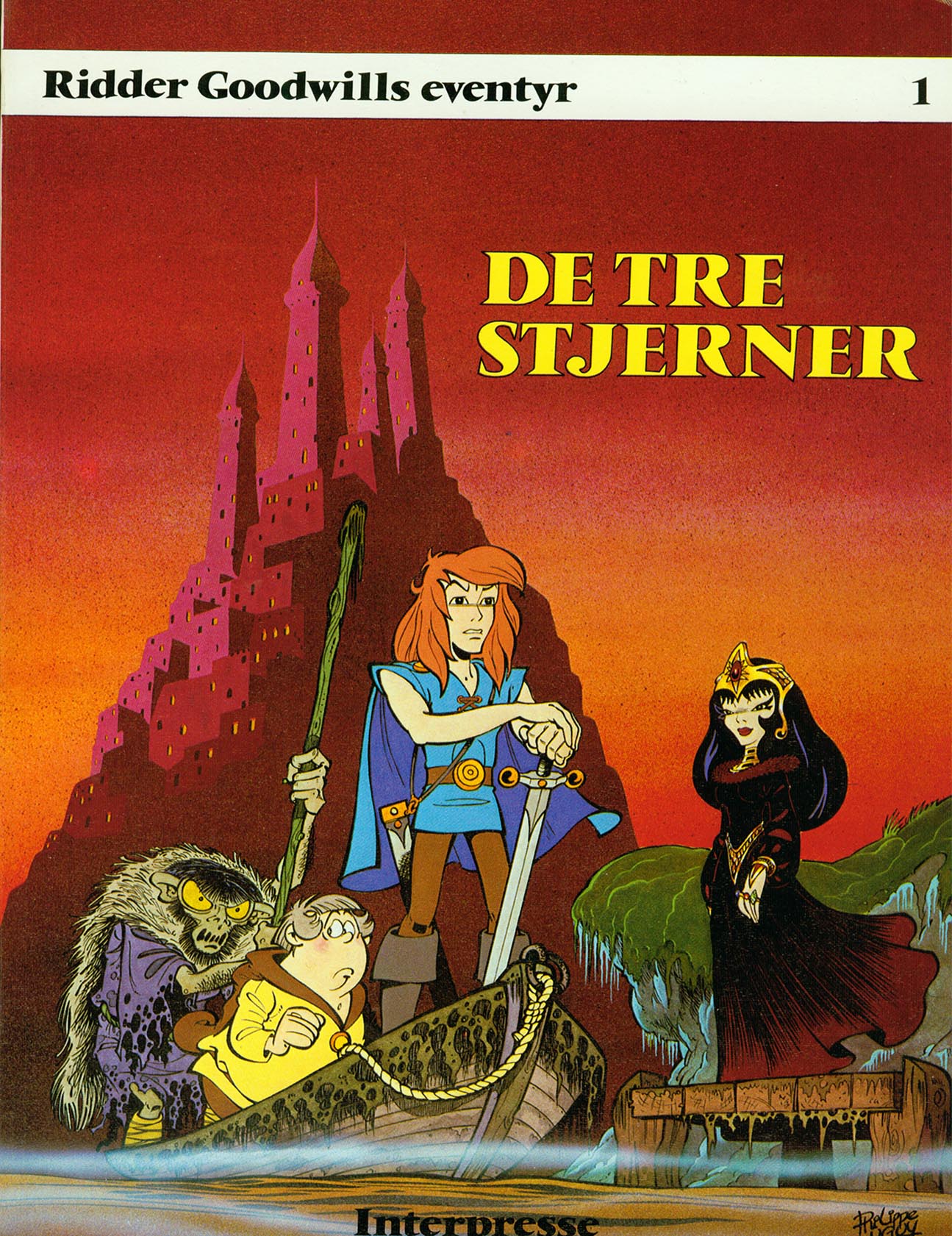 RIDDER GOODWILL PHILIPPE LUGUY Philippe Luguy, Guy Liéron (f. 29. november 1948, Frankrig) fik I begyndelsen af 1980'erne var Philippe Luguy medlem af Five Star Studios (sammen med Pierre Leguen, Gaty, René Deynis og Max Lenvers), hvor han arbejdede på projekter som en tegneserieversion af TV-serien Albator til Le Journal de Captain Fulgur. I 1981 illustrerede han 32 pantomime tegneserier, der fulgte med Malabar tyggegummi, undertiden i samarbejde med Mic Delinx (8 striber) og Yannick (16 striber). Samme år startede Luguy sin mest berømte serie, den middelalderlige fantasyserie, Chevalier Percevan/Ridder Goodwill (med tekst af Jean Léturgie og Xavier Fauche), der oprindeligt blev offentliggjort i Gomme og derefter i album af Glénat og Dargaud. Desuden skabte han han Karolyn med scriptwriter Lions hos Dargaud i 1989. |